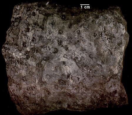 Stigmaria sp. The genus Stigmaria is assigned to the detached rhizomes (root systems) of lepidodendroid lycophytes (Lepidodendron, Sigillaria), which, unlike modern lycophytes not reaching heights of more than a meter, could attain heights of 50 meters (160 feet). Note on the specimen the circular scars where the roots were attached. |